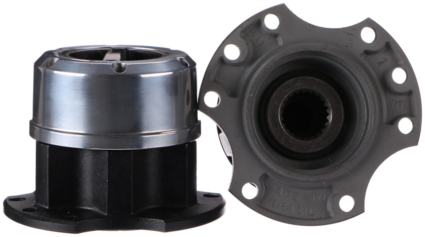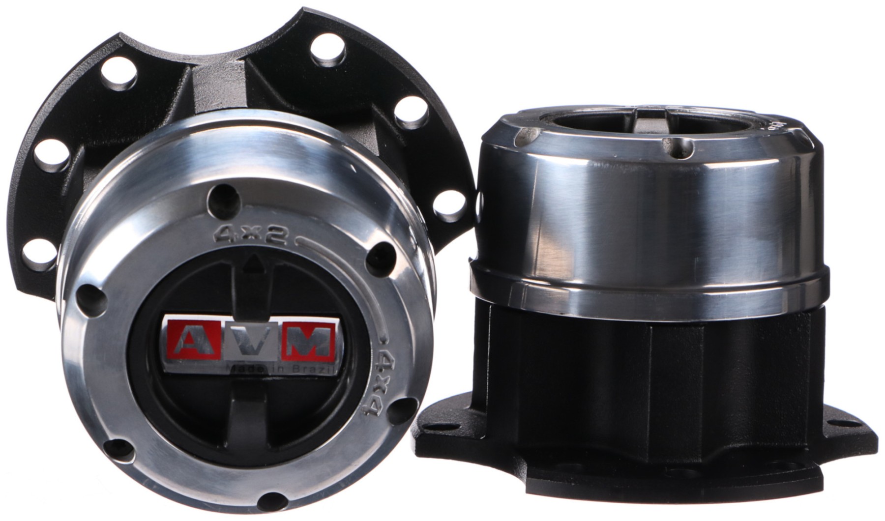 Két darab, kézi működtetésű, kiváló minőségű AVM szabadonfutó készlet, alkalmas normál és terepjáró járművekhez. Masszív acélkivitelezésének és epoxi bevonatának köszönhetően ellenáll az extrém kültéri körülményeknek. A belső alkatrészek precízen meg vannak munkálva.