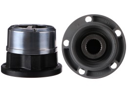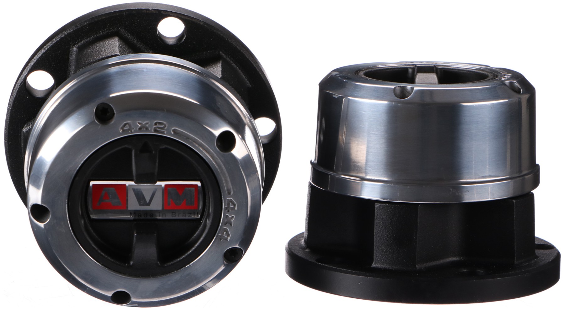 Két darab, kézi működtetésű, kiváló minőségű AVM szabadonfutó készlet, alkalmas normál és terepjáró járművekhez. Masszív acélkivitelezésének és epoxi bevonatának köszönhetően ellenáll az extrém kültéri körülményeknek. A belső alkatrészek precízen meg vannak munkálva.
