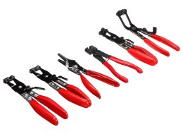 kárpitrögzítő fogót, Clic és Clic-R típusú csőbilincs-fogókat, hajlított egyszerű önzáró csőbilincs-fogót, önzáró bilincs-fogót, egyszerű önzáró csőbilincs-fogót, önzáró csőbilincs-fogót és bowdenkábeles csőbilincs-fogót 700 mm hosszú kábellel, amely lehetővé teszi a hozzáférést nehezen elérhető helyekre. A szerszámok tartós acélból készülnek és gumírozott markolattal rendelkeznek a kényelmes fogás érdekében. A készlet erős műanyag tokban van tárolva, ami megkönnyíti a tárolást és a szállítást.